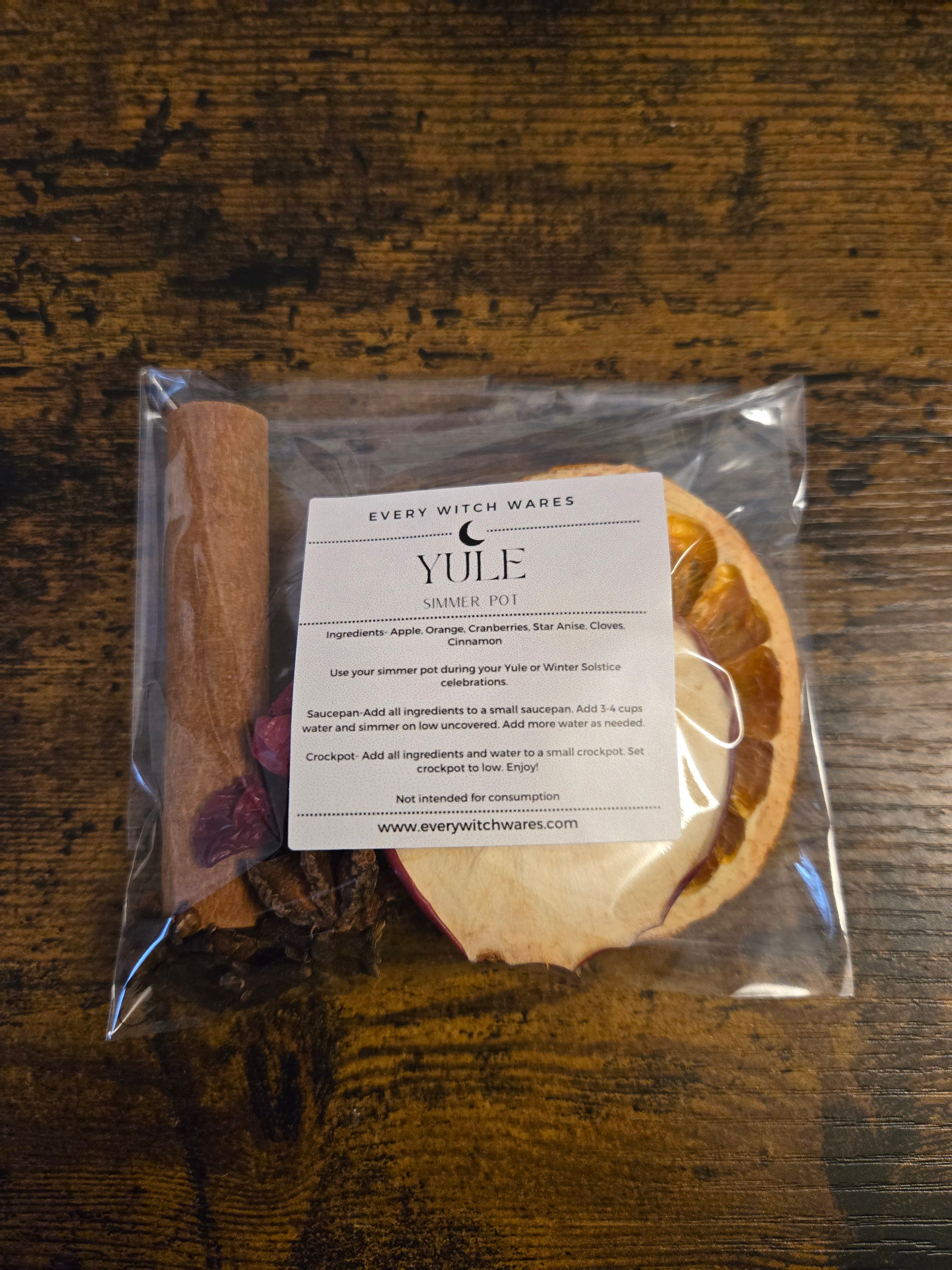 Celebrate Yule, Winter Solstice, or Christmas with this Yule simmer pot. Each kit includes apples, oranges, cranberries, cloves, star anise, and cinnamon. Simmer in a small pot on the stove top or a small crock pot on high.